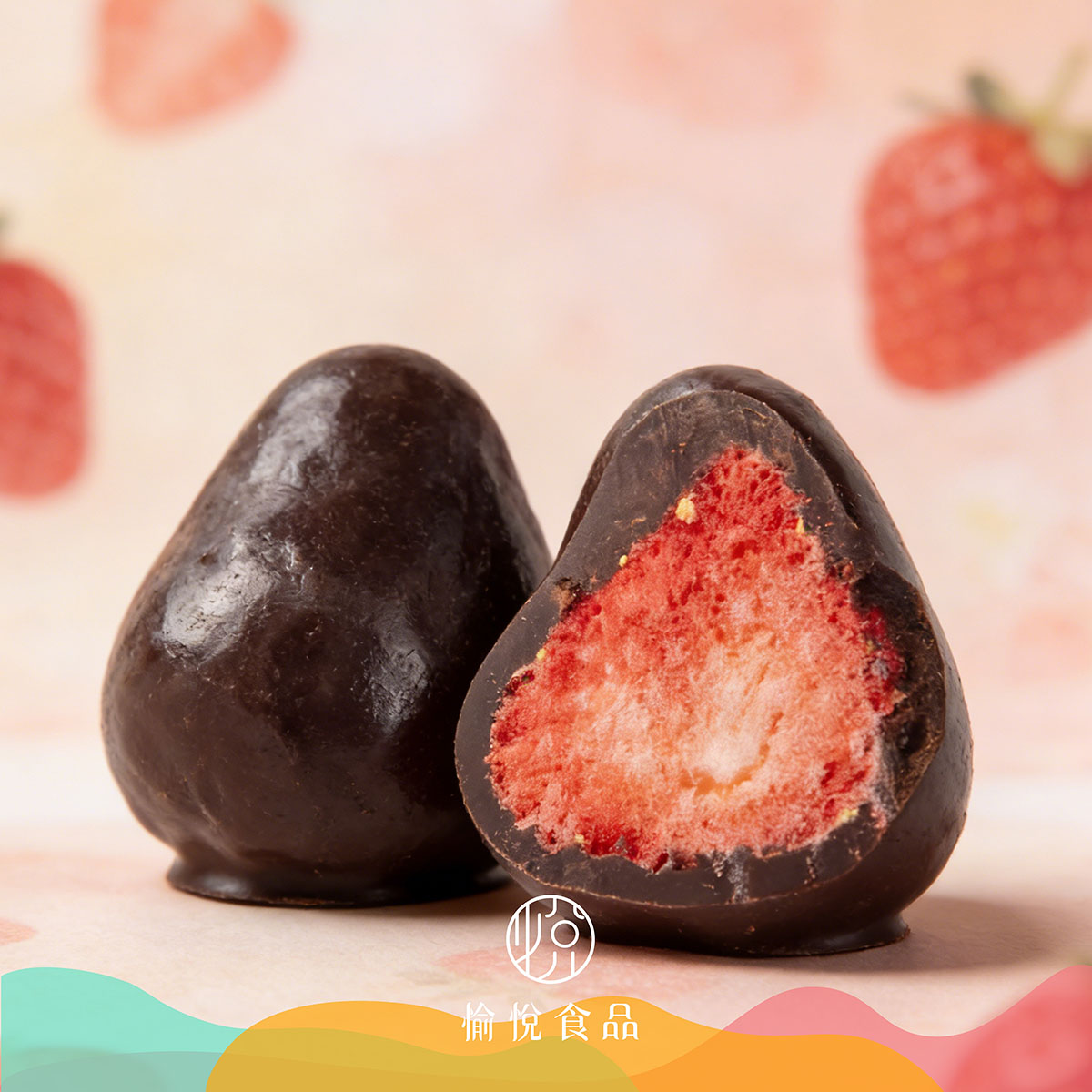 🍓凍乾士多啤梨朱古力:採用凍乾工藝鎖住士多啤梨的鮮甜本味,果肉酥脆不發柴,外層裹上薄厚均勻的朱古力,入口先嘗到朱古力的柔滑,而後是士多啤梨的清新果香,脆嫩與綿密交織,口感層次滿分,顏值粉嫩吸睛。
